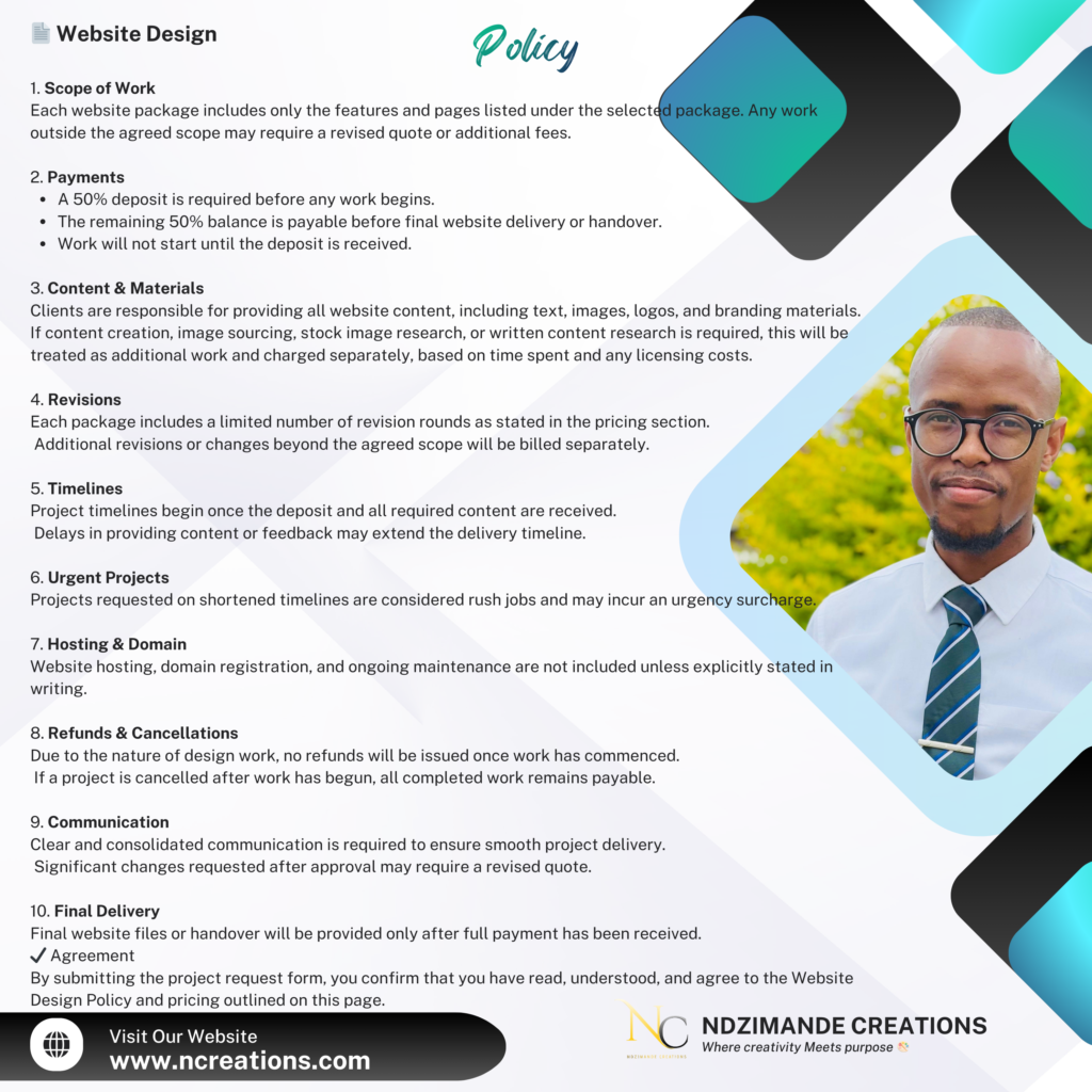 This page outlines my design packages, pricing, and project guidelines to help you understand how I work before submitting a request.